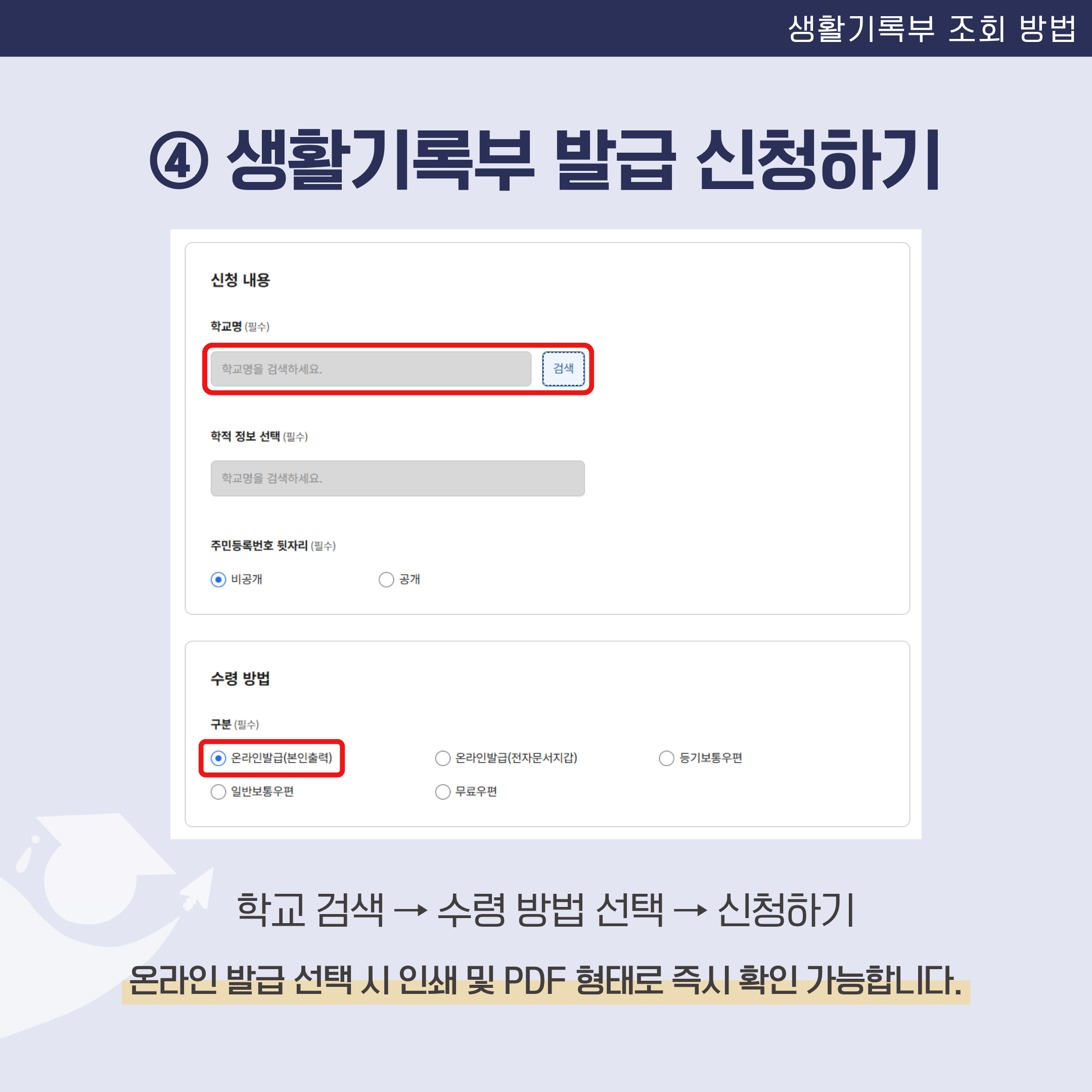 ¹ß±Þ ½ÅûÀ» À§ÇØ Çб³¸íÀ» °Ë»öÇÑ ÈÄ ¼ö·É ¹æ¹ýÀ» ¼±ÅÃÇÕ´Ï´Ù.